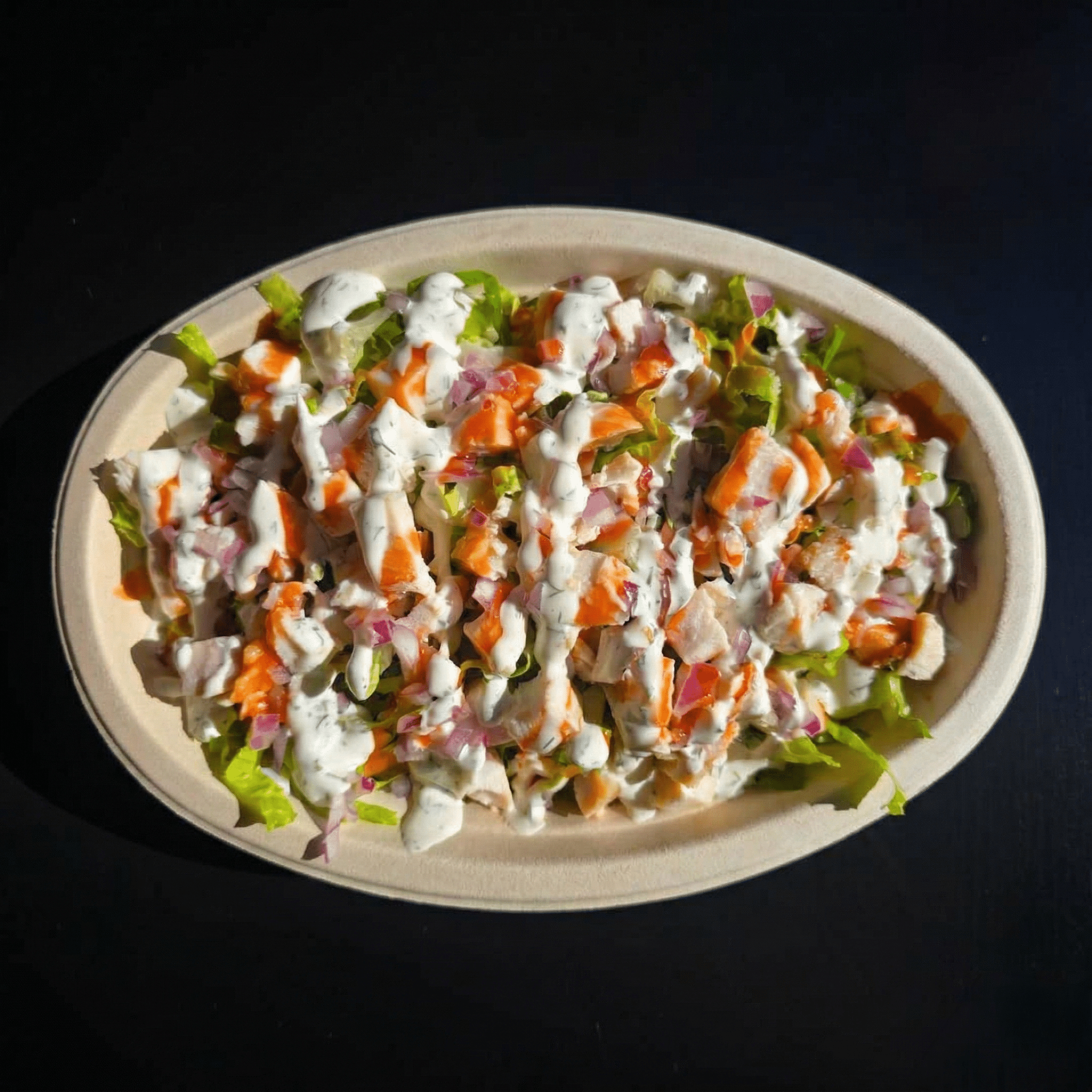 Egg White, Lettuce, Grilled Chicken, Red Onion, Buffalo Sauce, and House Made Creamy Ranch.