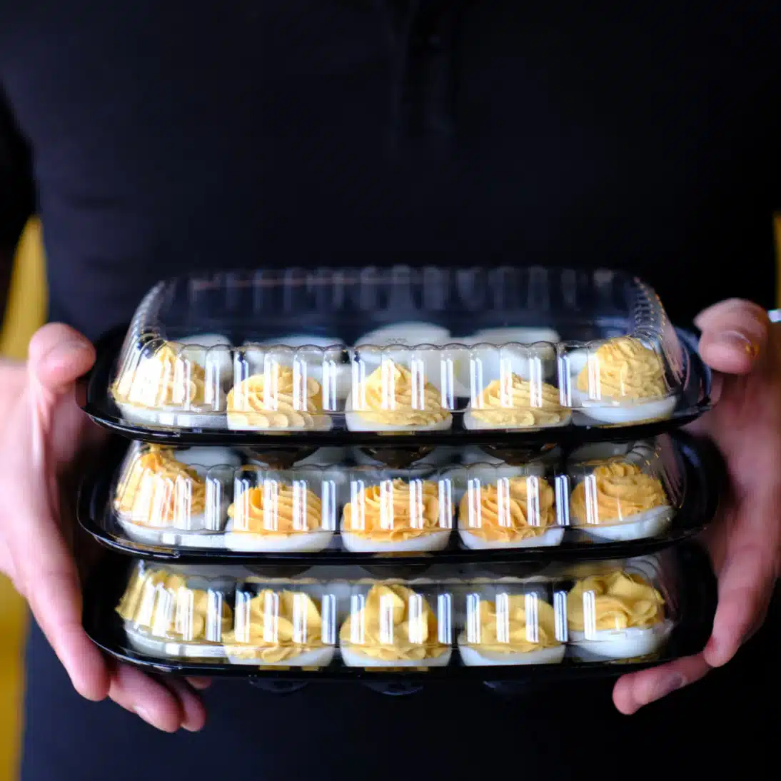 - All of the delicious toppings and sauces for your 3 deviled egg flavors