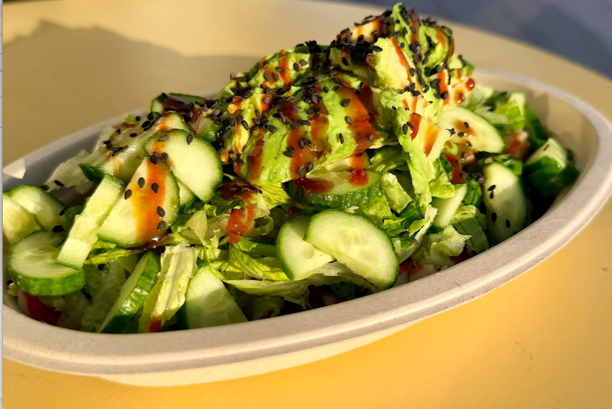 Egg Whites, Imitation Crab, Sriracha Aioli, Avocado Smash, Cucumber, Teriyaki & Black Sesame Seeds (32 grams of Protein)